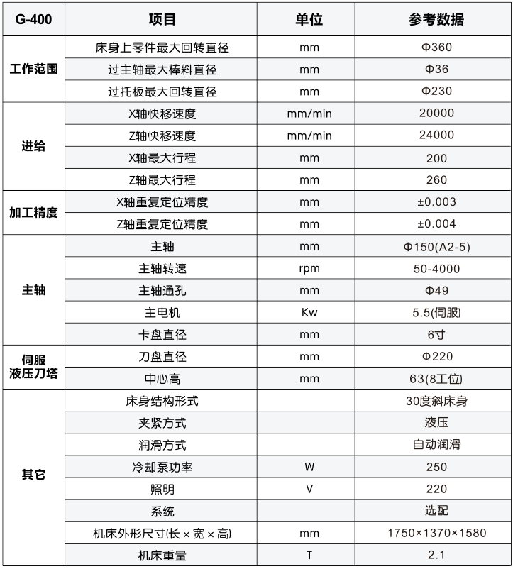 机床采用高强度铸铁日本30°斜床身整体铸造,外观设计新颖,人性化