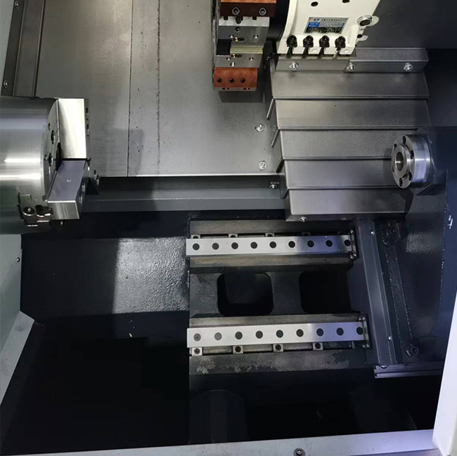 采用高强度铸铁45度斜置式床身底座结构,外观设计新颖,人性化